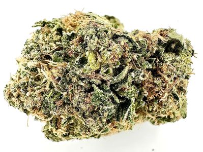 Death Bubba is an indica dominant hybrid (70% indica/30% sativa) strain created as a descendant of the hugely popular Bubba Kush strain. This dank bud boasts an insanely high THC level that ranges between 25-27% and effects that can end in an almost death-like sleep. Almost immediately after smoking, you'll feel a wave of rushing focused energy wash over you that leaves you uplifted and motivated with tendencies towards having psychoactive experiences. As the high continues, you'll be eased into a state of utter relaxation with deep introspection and spaciness that can cause you to become distant in social situations. Upon the comedown from the high, Death Bubba pulls you into a deep and peaceful undisturbed sleep that lasts for hours on end, giving you the appearance of being unwakeable. Death Bubba has an aroma of musky earthy pine and a taste of spicy lemon pine with a hint of pungent earth upon exhale. This bud has medium-sized dark forest green nugs with rich purple undertones and a spattering of fiery orange hairs. Each nug is completely covered with dark olive green leaves that are almost furry and have a thick layer of frosty sandy white trichomes.