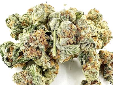 Gusherlicious is an indica dominant hybrid strain (70% indica/30% sativa) created through crossing the potent Kosher Kush X Gushers strains. A mouthwatering bud with a soaring high and superior potency level, Gusherlicious is the perfect choice for any experience patient who appreciates a classic indica strain. The taste of Gusherlicious is much like its name implies, with a juicy taste of sweet berry candies accented by hints of spicy black cherries and fresh kush. The aroma is very similar with a kushy herbal overtone accented by a bouquet of fresh fruits and spicy cherries. The Gusherlicious high will settle in slowly, settling into your mind with a creeping build of lifted happiness. As your mind settles into this happy place, a soothing body high will begin to sink in, eventually leaving you helplessly locked down to the couch with a heavy sedation. With these effects and its super high 26% - 29% average THC level, Gusherlicious is often suggested to treat experienced patients with a variety of conditions including chronic stress or anxiety, depression, chronic pain and headaches or migraines. This bud has dense, grape-shaped forest green nugs with super thin orange hairs and a sparkling coating of tiny, amber-tinted white crystal trichomes.
